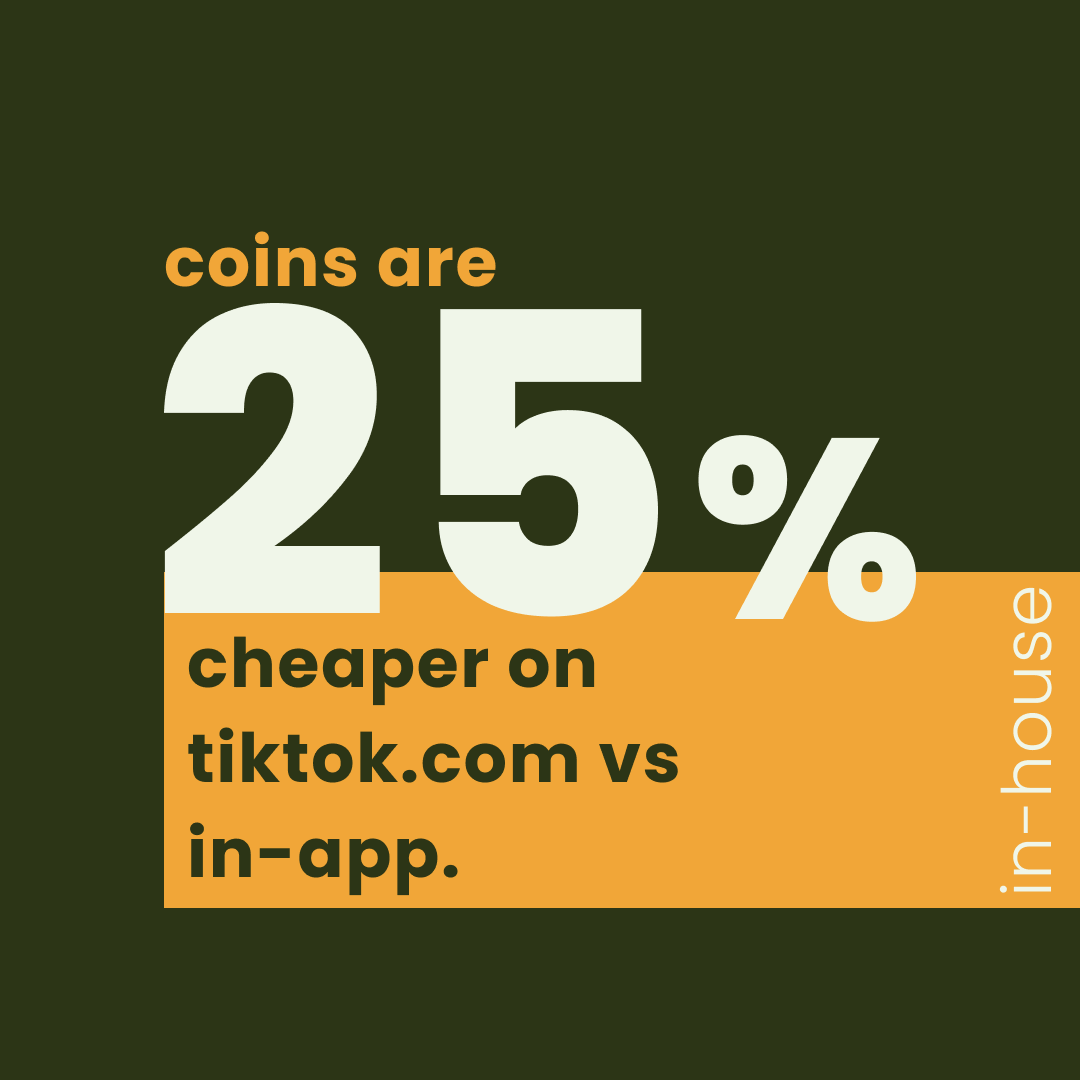 TLDR: buying tiktok coins through the app is more expensive - buy through tiktok.com to save 25% on all your coin purchases.